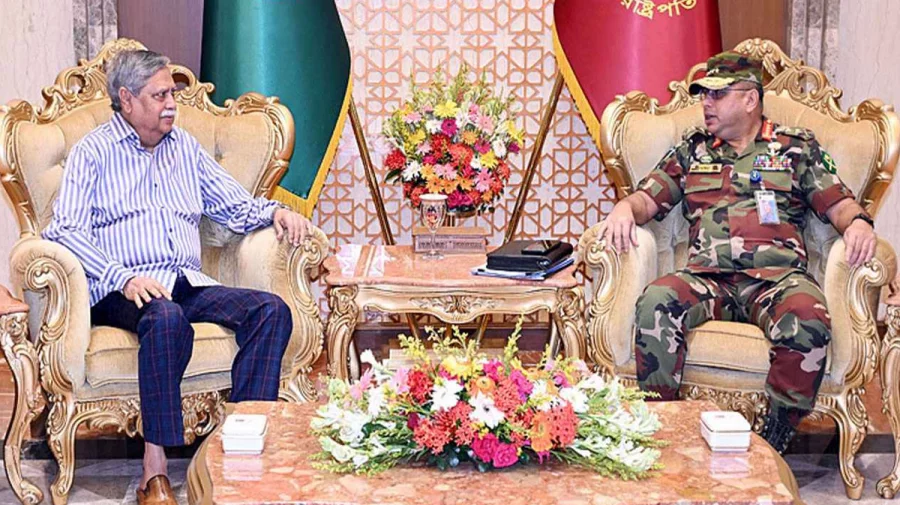 রাষ্ট্রপতি মোঃ সাহাবুদ্দিনের সঙ্গে সাক্ষাৎ করেছেন সেনাবাহিনী প্রধান জেনারেল ওয়াকার-উজ-জামান। শনিবার (৫ অক্টোবর) সকালে বঙ্গভবনে রাষ্ট্রপতির সঙ্গে সাক্ষাৎ করেন সেনাপ্রধান।