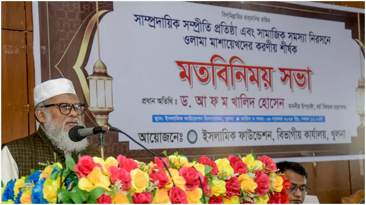 শনিবার (৯ নভেম্বর) দুপুরে খুলনা ইসলামিক ফাউন্ডেশন বিভাগীয় কার্যালয়ে সাম্প্রদায়িক সম্প্রীতি প্রতিষ্ঠা ও সামাজিক সমস্যা নিরসনে উলামা-মশায়েখদের করণীয় শীর্ষক মতবিনিময় সভায় প্রধান অতিথির বক্তৃতায় তিনি এসব কথা বলেন।