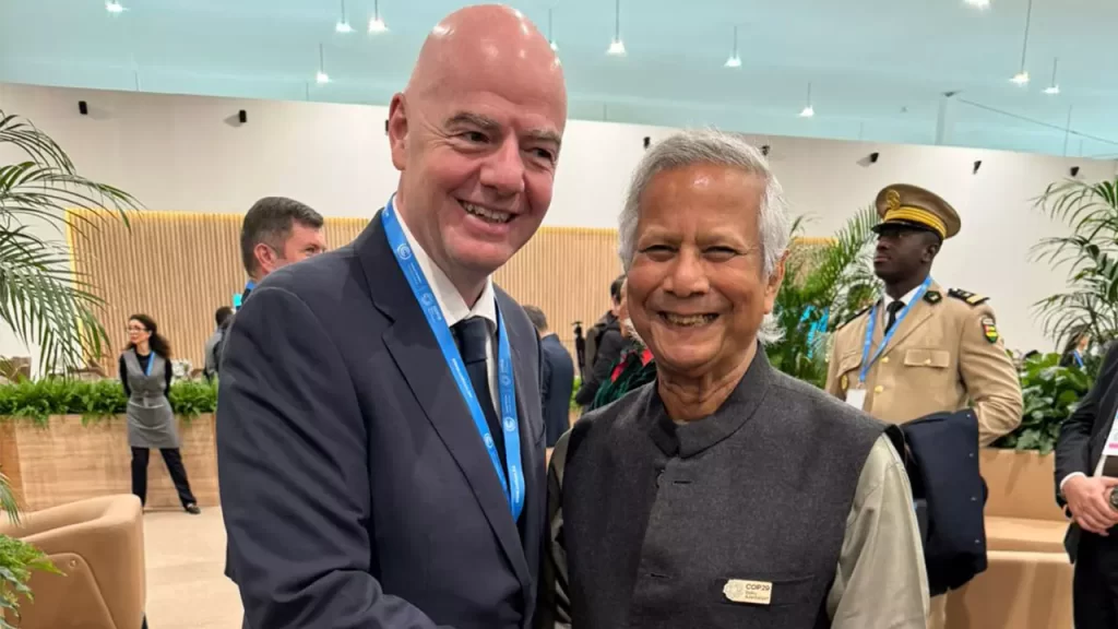 স্থানীয় সময় মঙ্গলবার (১২ নভেম্বর) আজারবাইজানের রাজধানী বাকুতে কপ ২৯ সম্মেলনের ফাঁকে প্রধান উপদেষ্টার সঙ্গে দেখা করেন ফিফা প্রেসিডেন্ট।