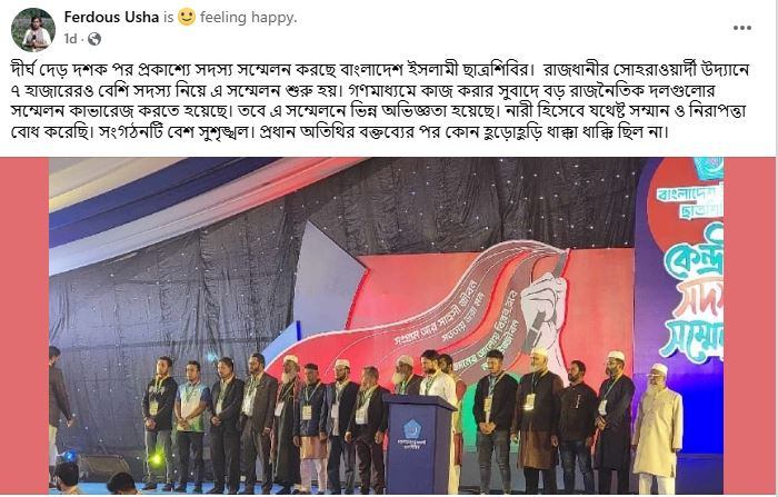 ছাত্রশিবিরের সদস্য সম্মেলন নিয়ে নারী সাংবাদিকের স্ট্যাটাস ভাইরাল