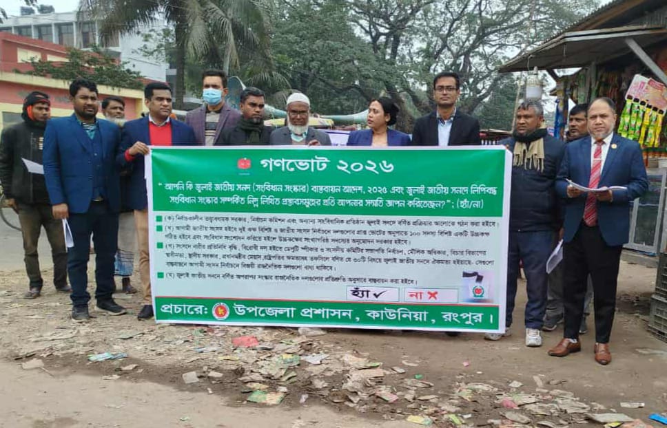 কাউনিয়ায় গণভোট বিষয়ে জনসচেতনতায় উপজেলা প্রসাশনের প্রচারণা