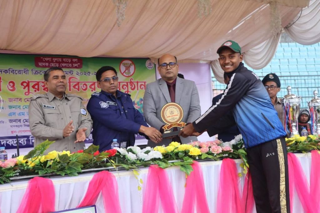 গোপালগঞ্জে মাদকবিরোধী ক্রিকেট টুর্নামেন্টের সমাপনী ও পুরস্কার বিতরণ